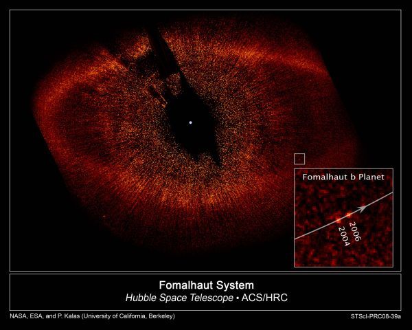 Denumită Fomalhaut b, exoplaneta are mărimea lui Jupiter, un posibil sistem de inele şi orbitează in jurul stelei Fomalhaut. Astronomii au dedus existenţa ei încă din 2005, bazându-se pe forţele gravitaţionale din zonă, însă este primul caz în care au reuşit să realizeze o fotografie propriu-zisă.