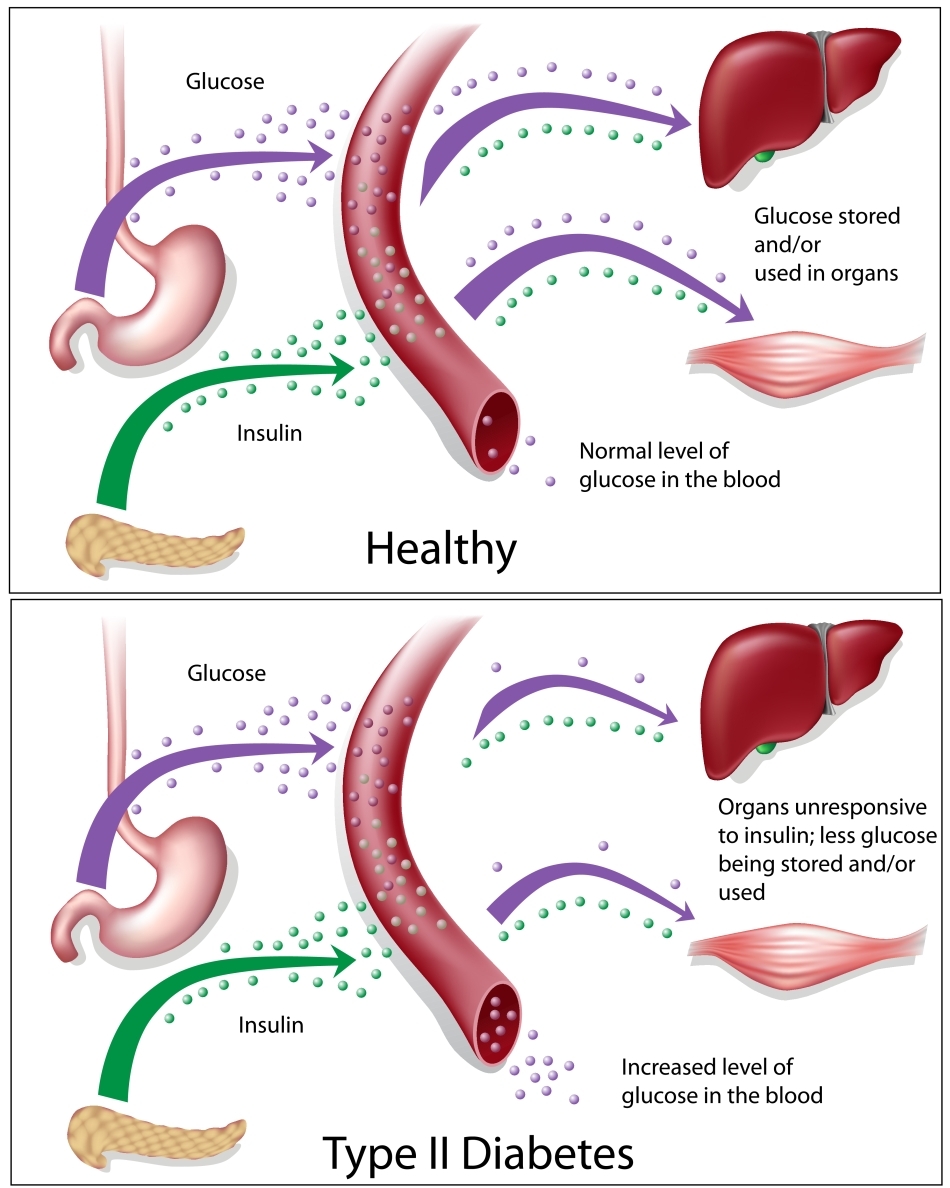 Când celulele devin rezistente la insulină, pancreasul produce o cantitate mai mare de insulină pentru a ţine sub control nivelul glucozei din sânge. Dacă producţia crescută de insulină nu reuşeşte să ţină sub control nivelul zahărului, persoana ajunge să sufere de diabet. Chiar dacă producţia sporită de insulină nu duce la dezvoltarea diabetului, nivelul crescut al acestui hormon în corp are consecinţe negative, printre care creşterea nivelului trigliceridelor din sânge, hipertensiune şi numeroase alte dereglări ce poartă laolaltă numele de „sindrom metabolic”. Acesta este de multe ori primul pas spre afecţiuni cardiovasculare.