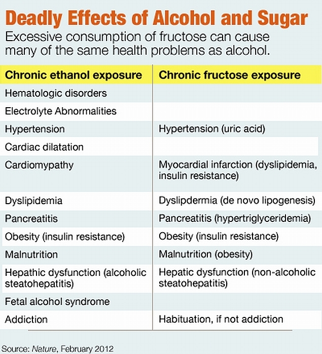 De-a lungul istoriei omenirii, fructoza a reprezentat o hrană sănătoasă şi sigură. „Până acum, consumam fructoză în cantităţi mici, din fructe, care conţin fibre ce încetinesc absorbţia şi se consumă mai lent din cauza texturii. Acum, însă, putem produce zahăr şi sirop de fructoză ieftin, astfel că putem consuma cantităţi imense”, explică Lustig. Iar acest lucru ne omoară.
