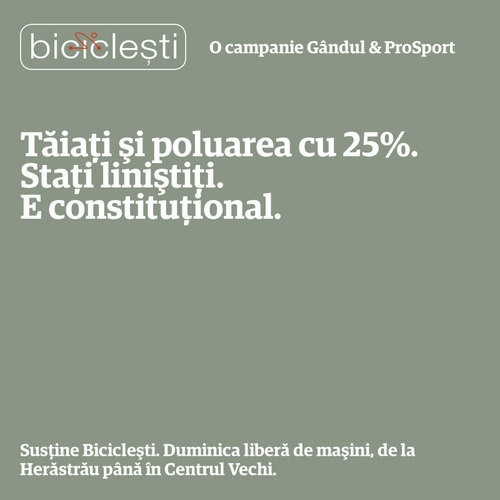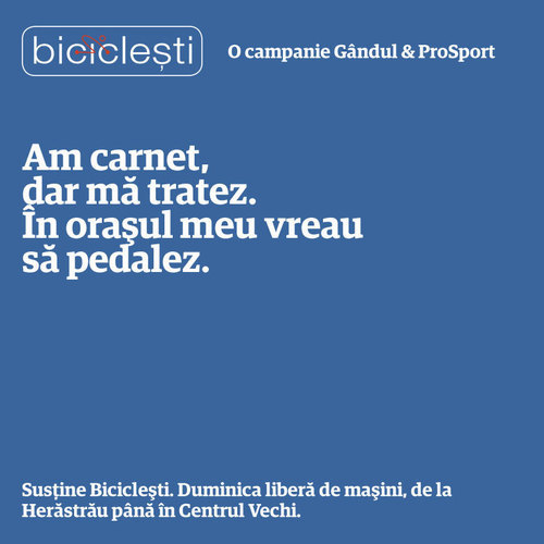 Gândul şi PRO SPORT au lansat în urmă cu o săptămână campania „BICICLEŞTI”, iniţiativă prin care ne-am propus să trasăm cea mai mare pistă de activităţi sportive de weekend. Aşadar, am cerut public primarului general al Capitalei, Sorin Oprescu, să închidă în luna octombrie traficul auto de la Herăstrău, via Kiseleff, Calea Victoriei, până în Centrul Vechi. Mii de oameni s-au alăturat, prin mesaje de susţinere pe Facebook sau accesând aplicaţia disponibilă pe reţeaua de socializare.
